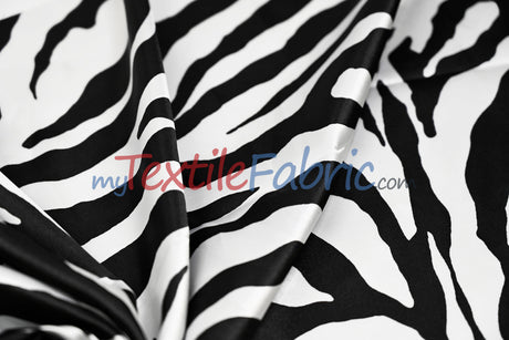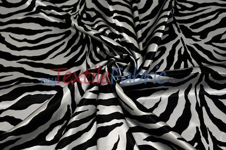Animal Zebra Satin Fabric | Soft Satin Zebra Charmeuse Fabric | 60" Wide | Multiple Colors |