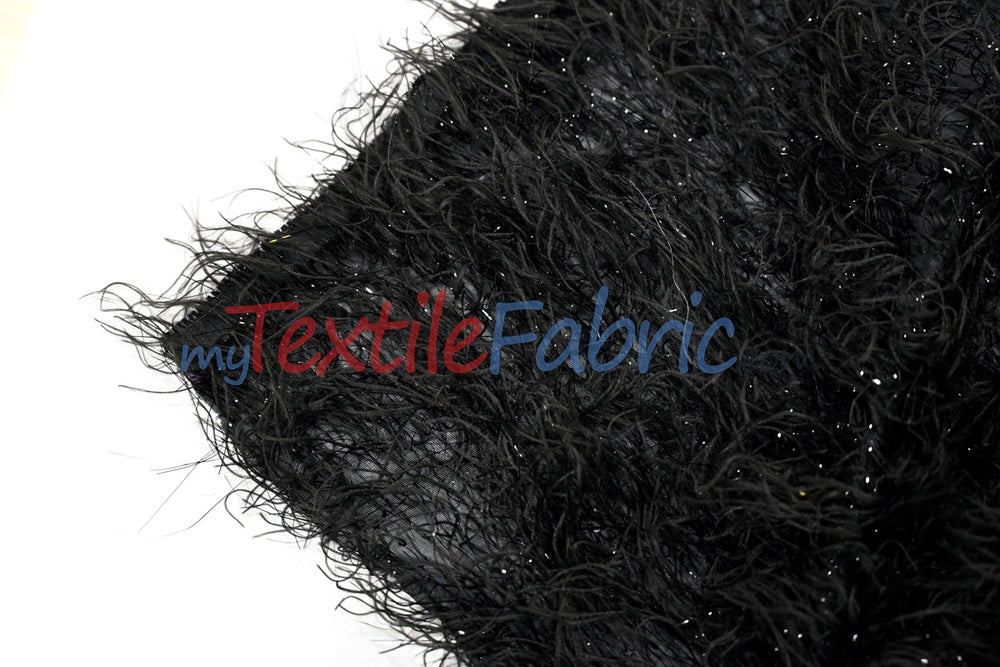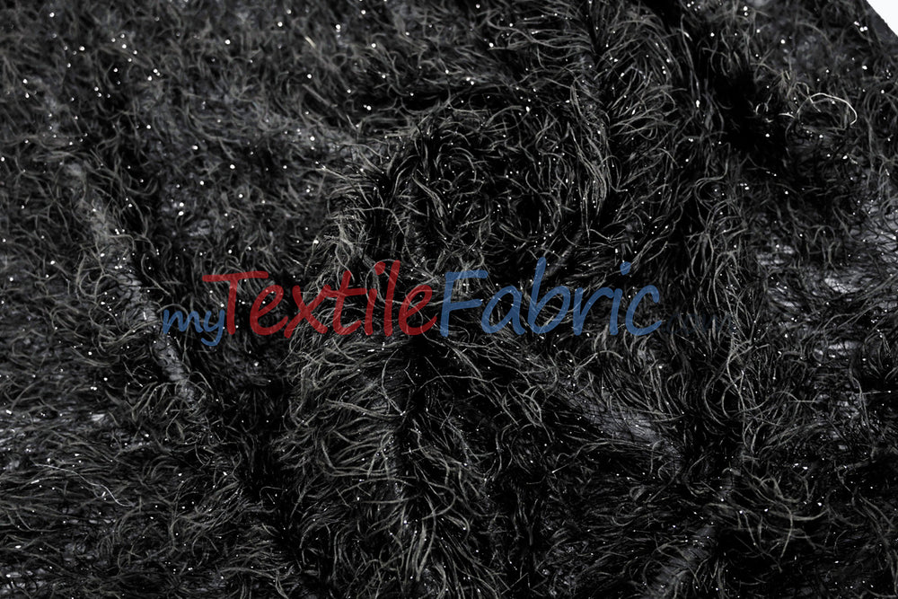 Black Shaggy Brocade | Metallic Eyelash Lame Fabric | 57 Inch Wide | For Costumes Cosplay Apparel & Decor