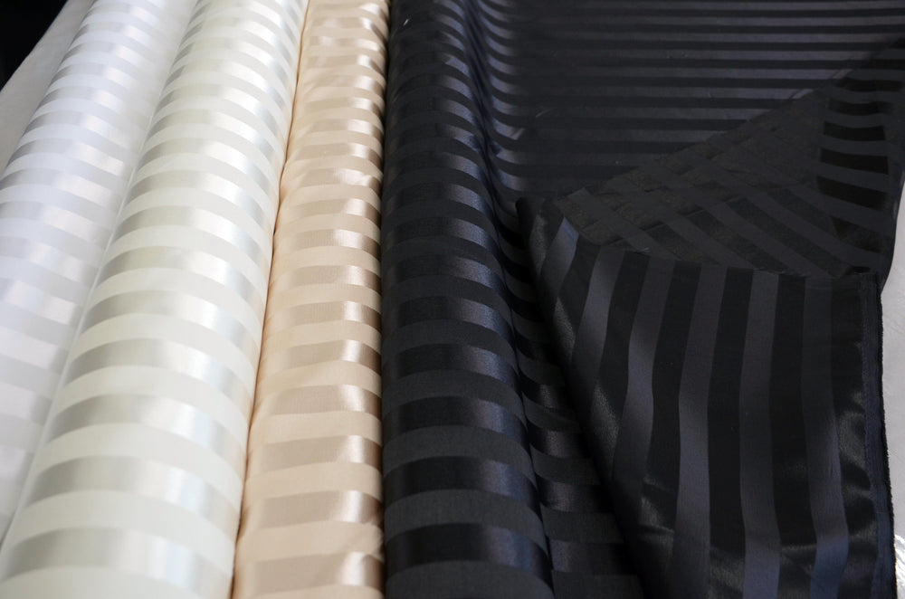 • Bridal Satin Stripe is a tone on tone stipe jacquard.