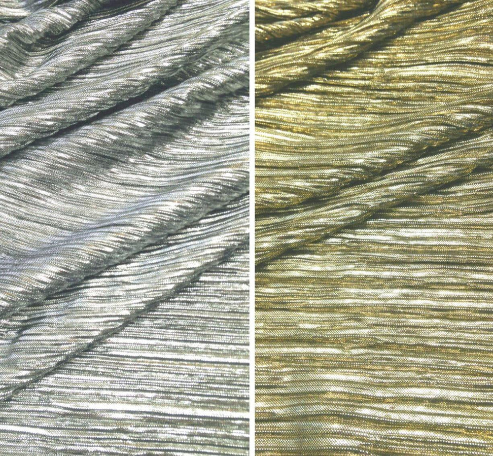 Crease Lame fabric can be applied to the apparel, theatrics, cosplay and event industry. Its ability to crush and change texture and its high sheen allows for multiple applications. Crease Lame is a Chinese made replica of our Japanese Tissue Lame. One of few fabrics that are so fragile yet luxurious and has no face. Both sides are identical.