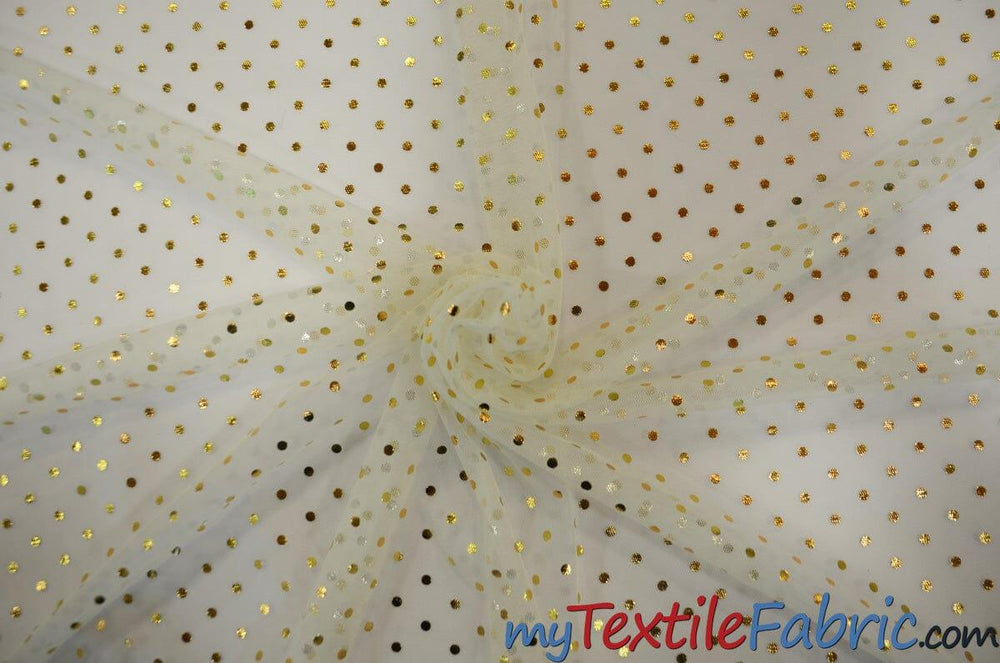 Bridal Tulle with Metallic Polka Dot | 60" Wide | Available in White and Ivory | - is backordered and will ship as soon as it is back in stock.