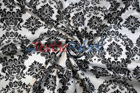 White Black Damask Satin Print Fabric | Damask Lamour Satin Fabric | Dull Satin Print | 60" Wide |