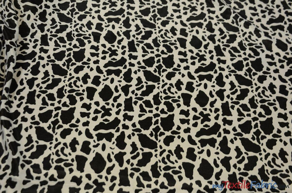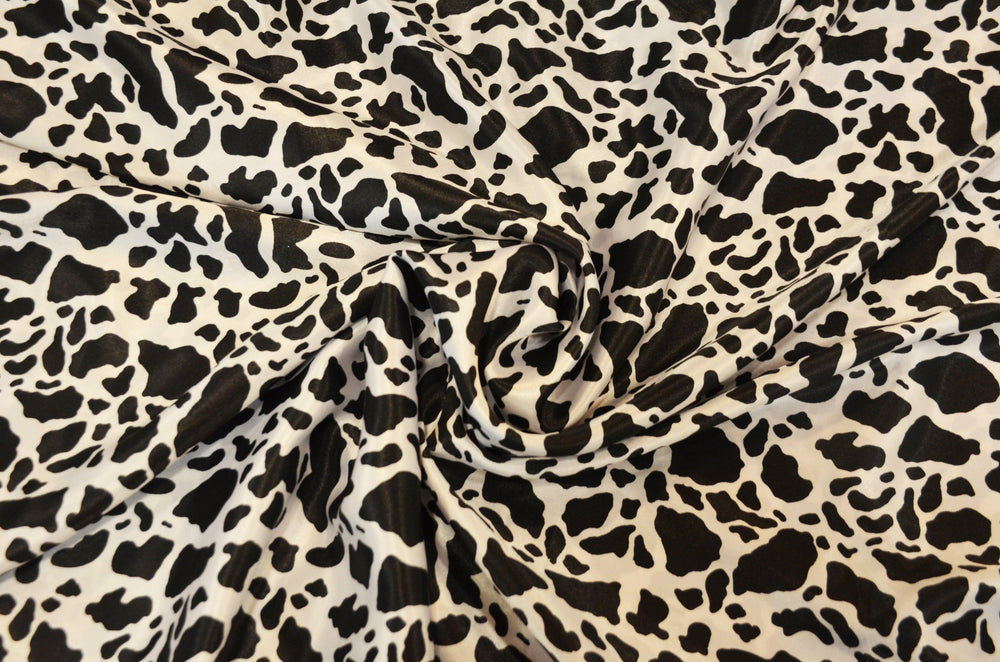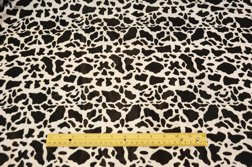 Small Black Cow Satin Print Fabric | Black Calf Charmeuse Satin | 60" Wide | - is backordered and will ship as soon as it is back in stock.