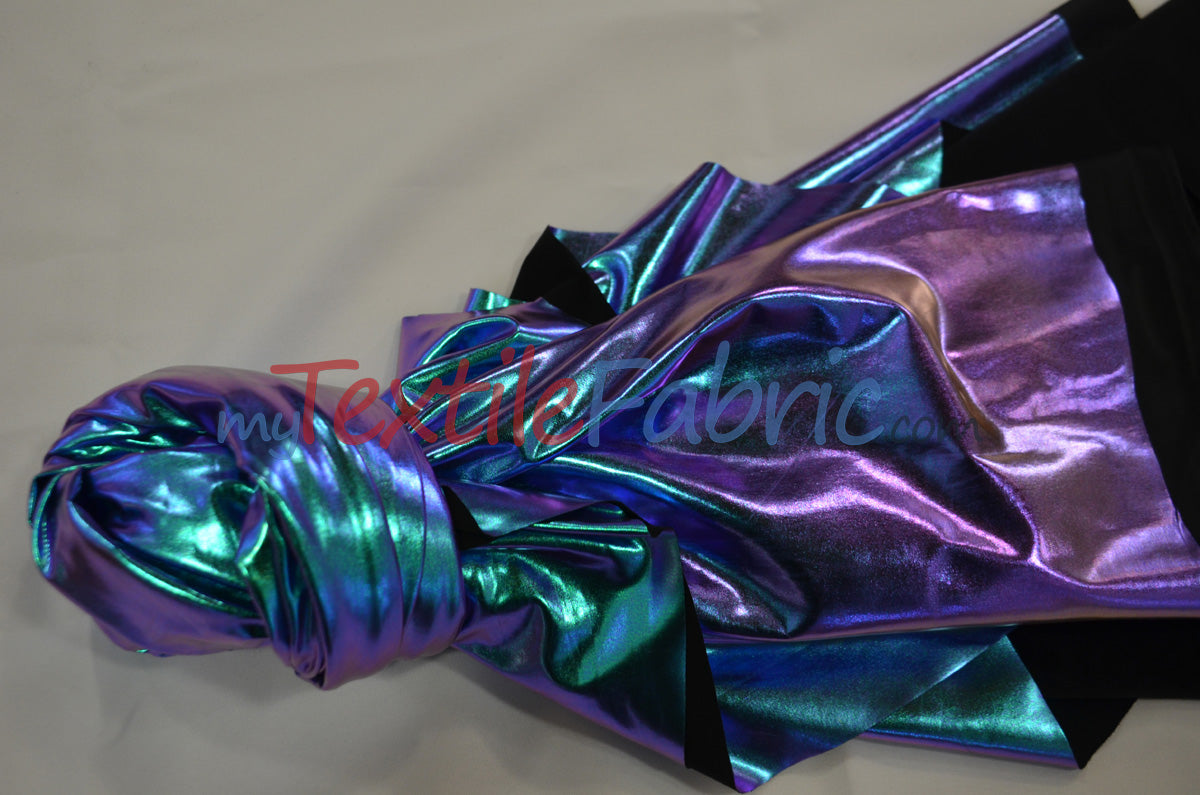 - Foil Hologram Spandex is a stretch iridescent lame spandex.