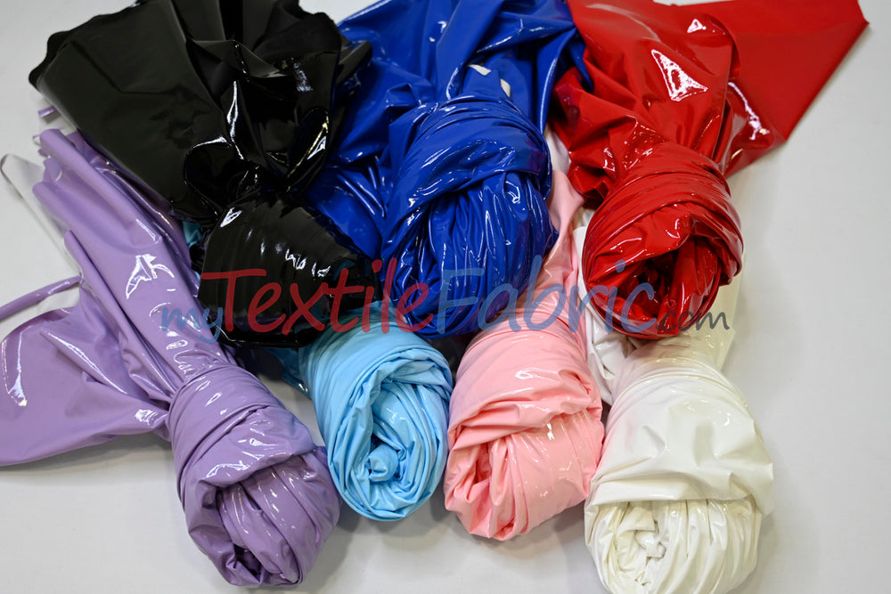 Shiny Stretch Patent Vinyl Fabric | 94% Polyester, 6% Spandex | 55" Wide | Glossy & Flexible Material for Fashion and Crafts