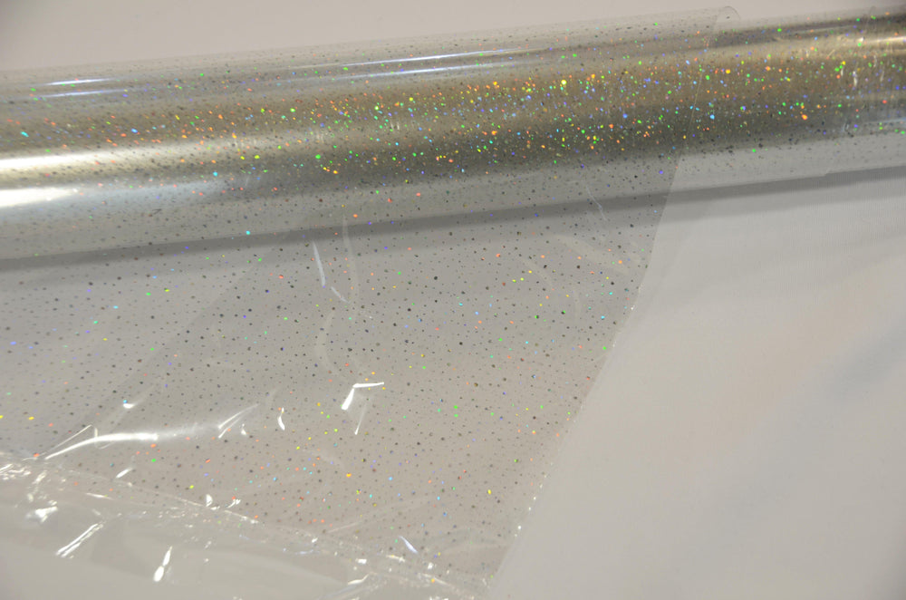 Transparent Glitter TPU Fabric | Holographic TPU Fabric Yard x 54" Wide | Rainbow & Waterproof TPU | Non Transparent | Soft Non Stretch |