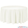 - 132" Round Seamless Tablecloth in White, Ivory, and Black about 180 GSM.