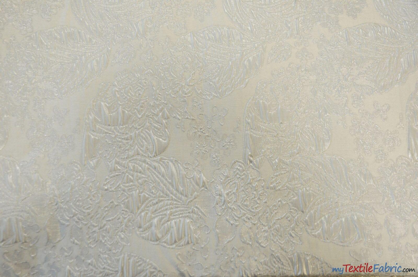 Botanical Bubble Metallic Jacquard Design # 16975A is a 54" wide 100% Polyester Metallic fabric. This Jacquard has metallic veins running criss cross through the fabric. Great for Costumes and Design. For backdrops and Curtains as the weight and hand flow is just right. Event rental customers can use this fabric for overlays, tablecloths, and chair covers.
