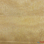 Metallic Lame is a textured crepon metallic lame with a satin finish on one side.  Available in two colors, Gold and Silver. Metallic Lame is a staple fabric in the apparel, theatric, cosplay and event industry. Its ability to crush and change texture and its high sheen allows for multiple applications. One of few fabrics that are so fragile yet luxurious and has no face. Reversible Fabric.