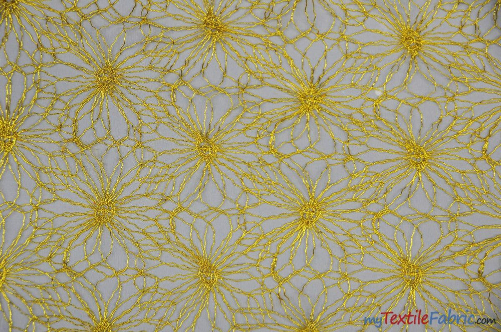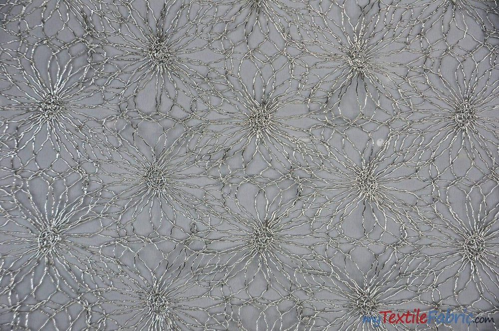 Open Weave Metallic Rose Mesh Fabric | 52" Wide | Scalloped Edge | Silver and Gold |