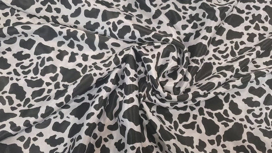 Small Black Cow Satin Print Fabric | Black Calf Charmeuse Satin | 60" Wide | - is backordered and will ship as soon as it is back in stock.